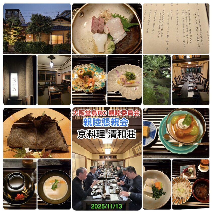 見学後は「京料理 清和荘」にて親睦食事会を開催し、落ち着いた雰囲気の中で参加者同士の交流を深めました。普段はゆっくり話す機会の少ないメンバーとも交流ができ、とても和やかで有意義な時間となりました。